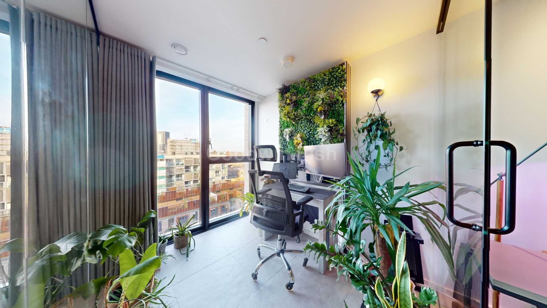 Garden room/study - Floor to ceiling windows with skyline views. Modena Grigio porcelain tiles.