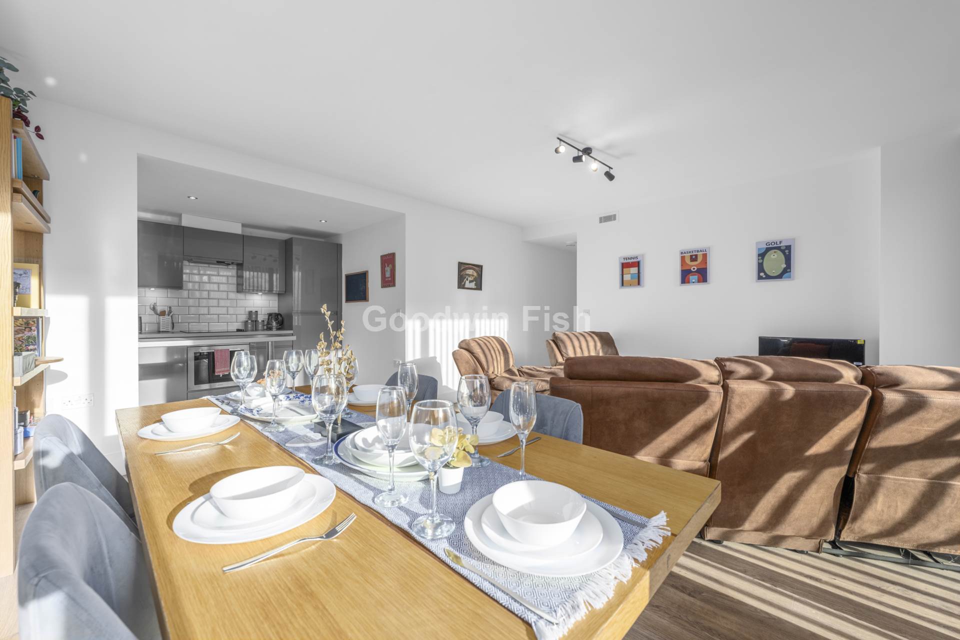 Benefiting from a bright dual aspect, the property comprises: entrance/hallway with storage, open plan lounge/diner with iconic concertina doors onto balcony; upgraded kitchen with integrated appliances including a SMEG ceramic hob and self-cleaning SMEG Cucina oven, and breakfast bar; primary bedroom with fitted wardrobe, en suite facilities and concertina doors providing access onto additional balcony; two additional double bedrooms; bathroom.