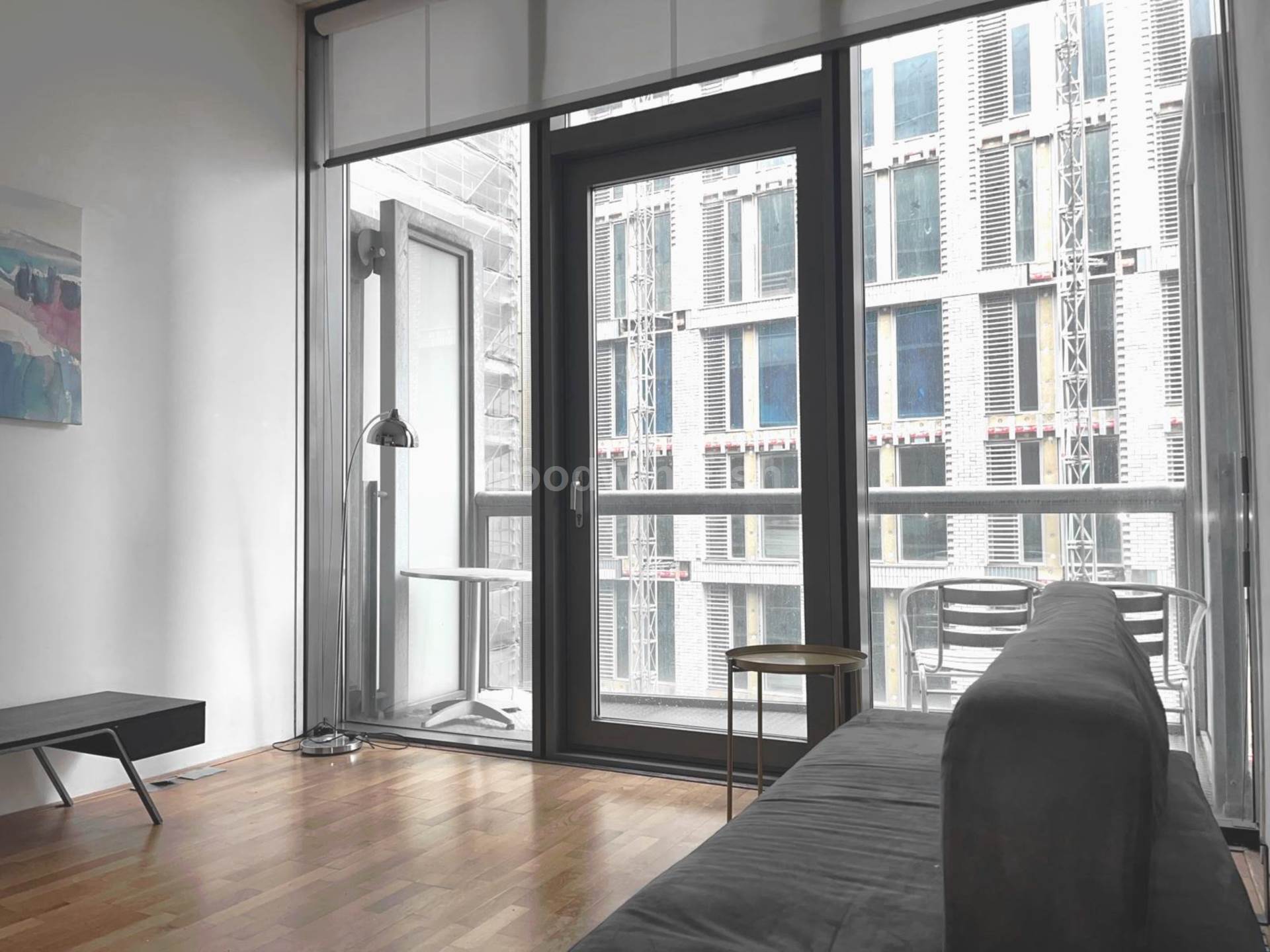 Property briefly comprises: Bedroom area with pull down bed and clothes storage, shower room with separating wall partitions, fitted kitchen with appliances and an open plan lounge area with access to a balcony with views over Salford.