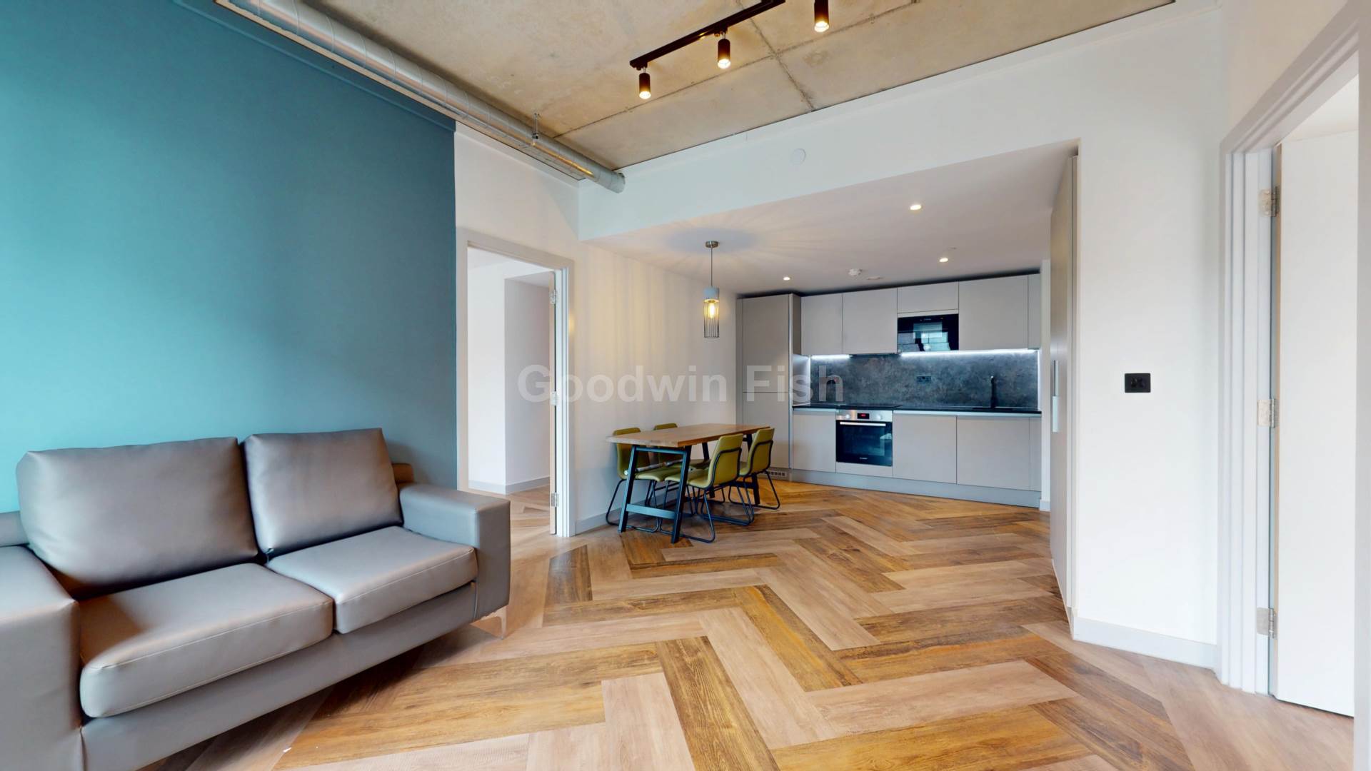 Featuring Herringbone style flooring, polished concrete ceilings and boasting a high specification throughout, this 5th floor apartment briefly comprises: entrance/hallway with storage; open plan lounge/diner; kitchen with integrated appliances and granite work top; two double bedrooms with fitted wardrobes; two luxury bathrooms.