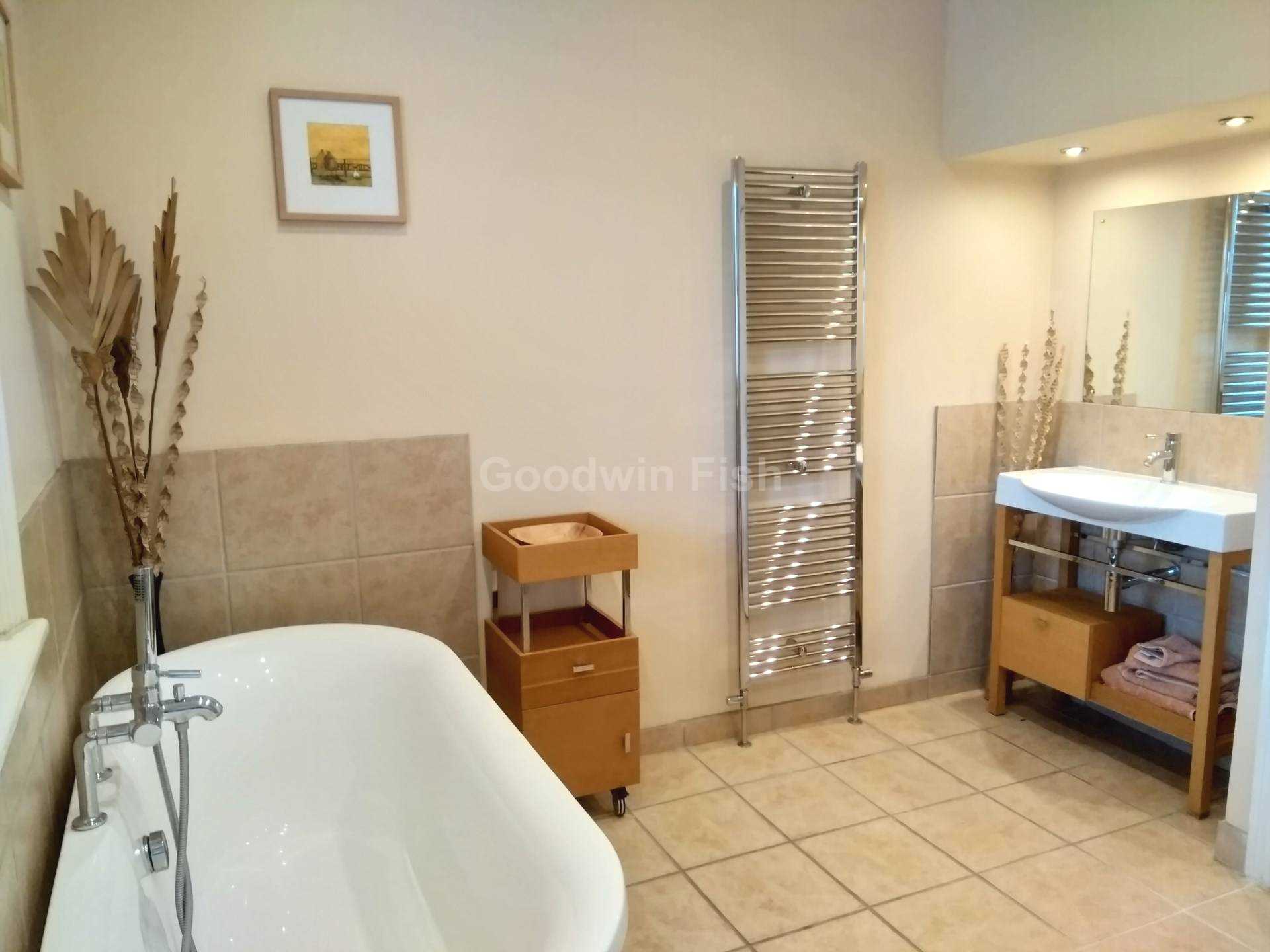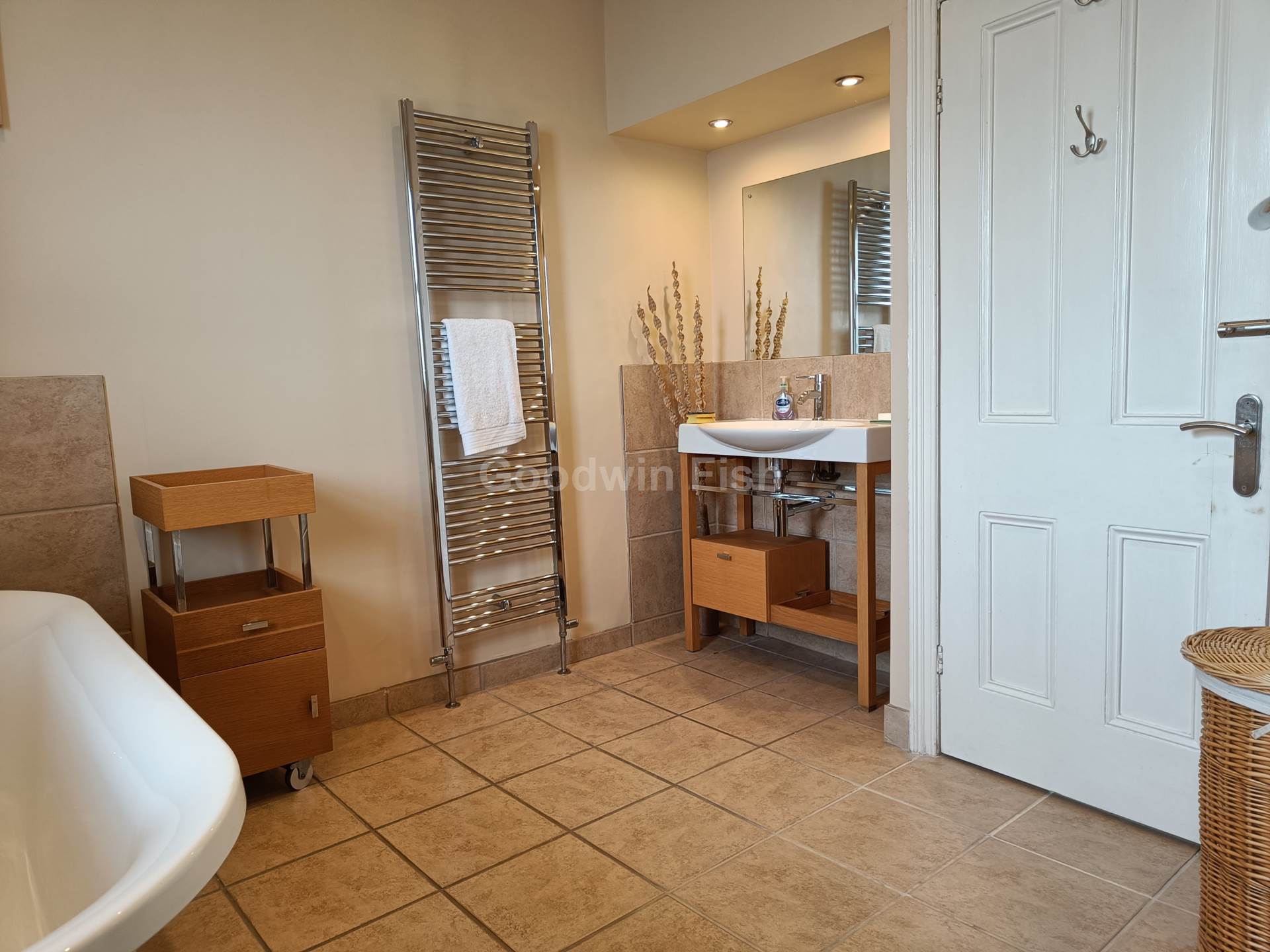 A large (& deep) free standing bath is the main feature, followed by an imposing and spacious shower facility.