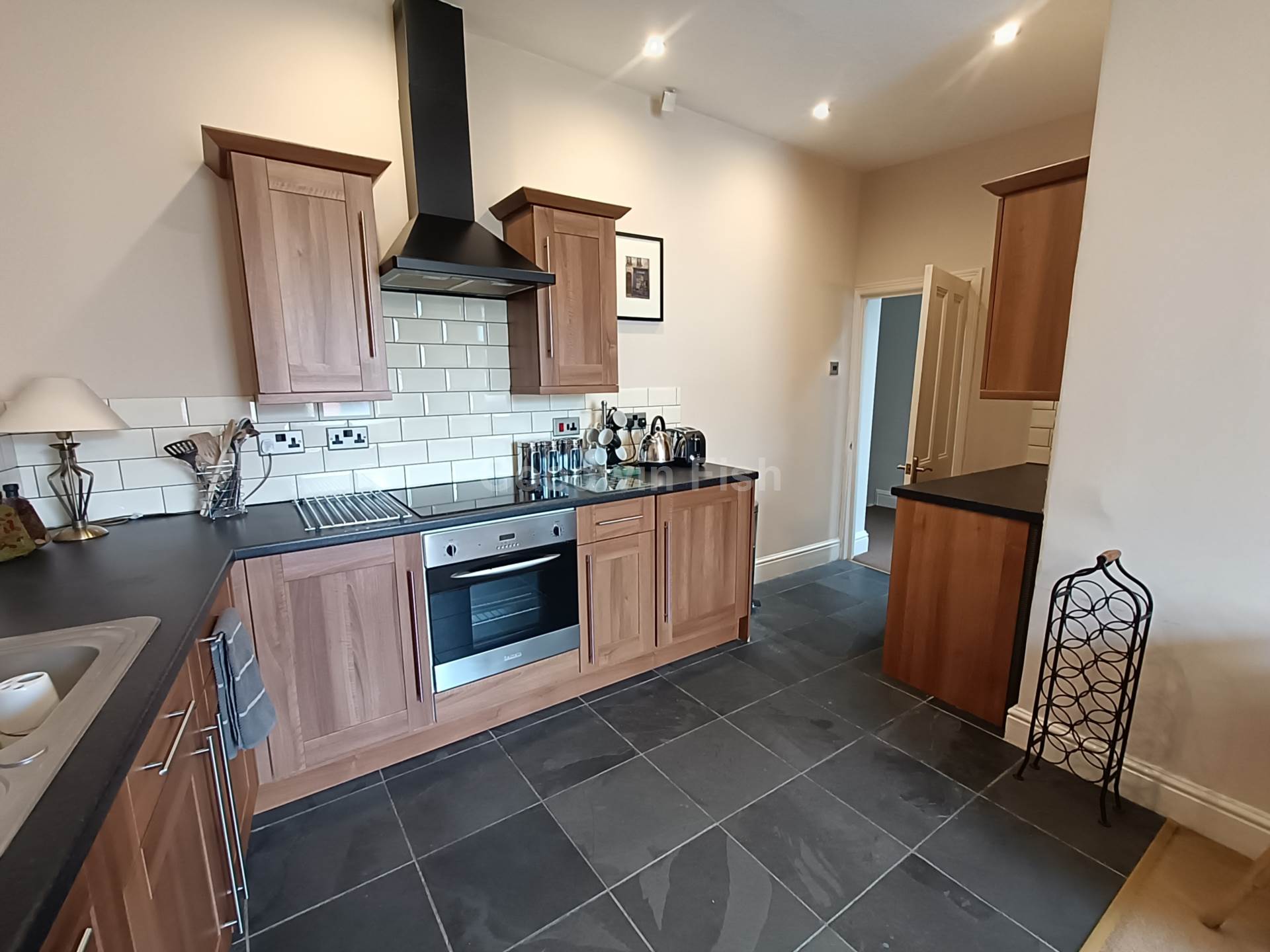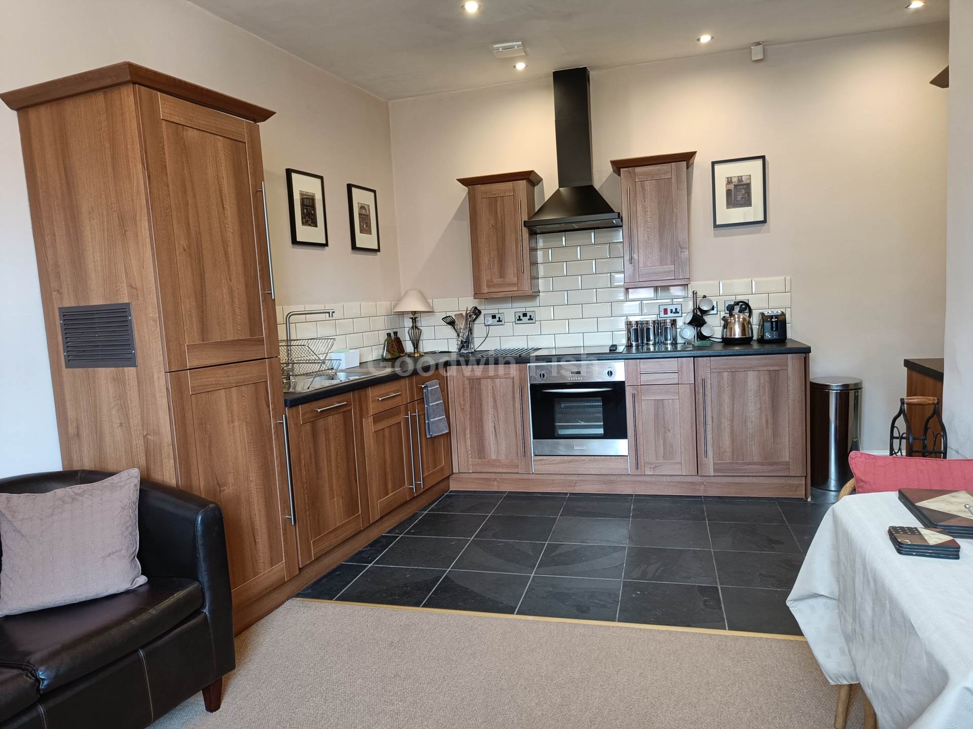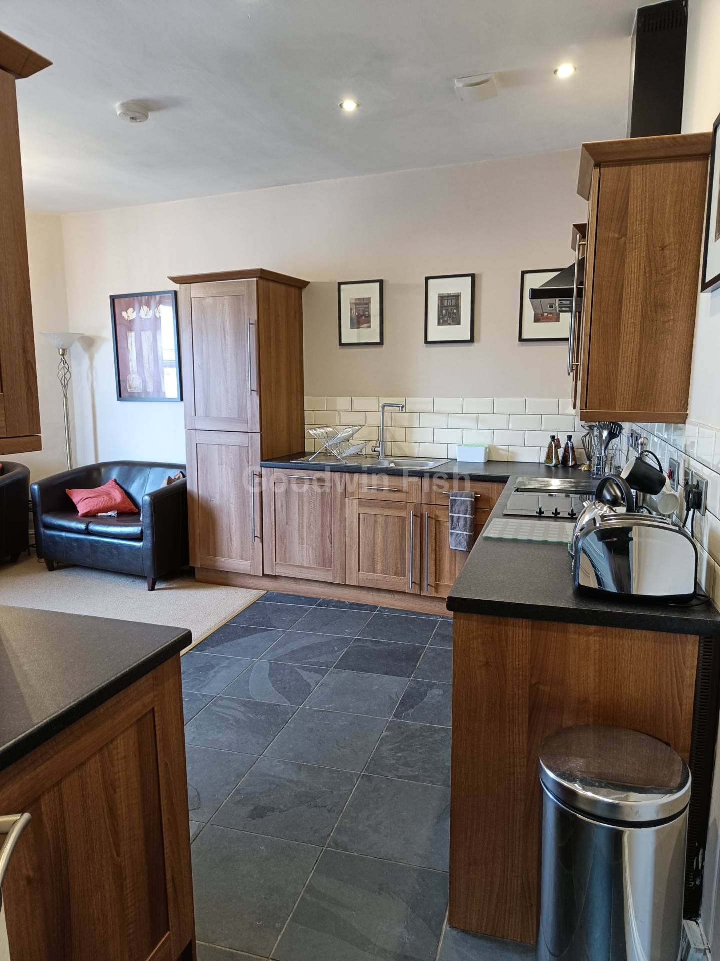 The kitchen area is equipped to the highest standards including electric fan oven, electric hob, built under fridge, freezer, dishwasher, and washing machine.