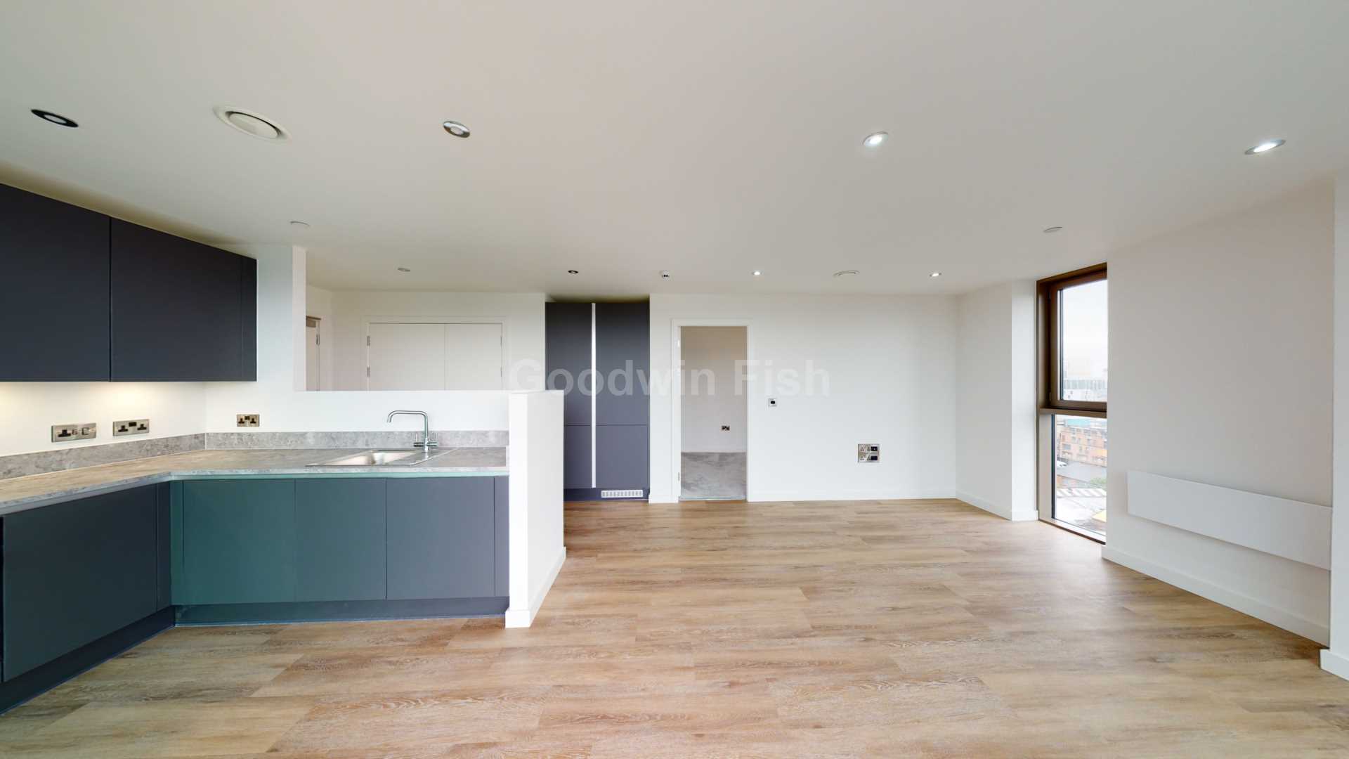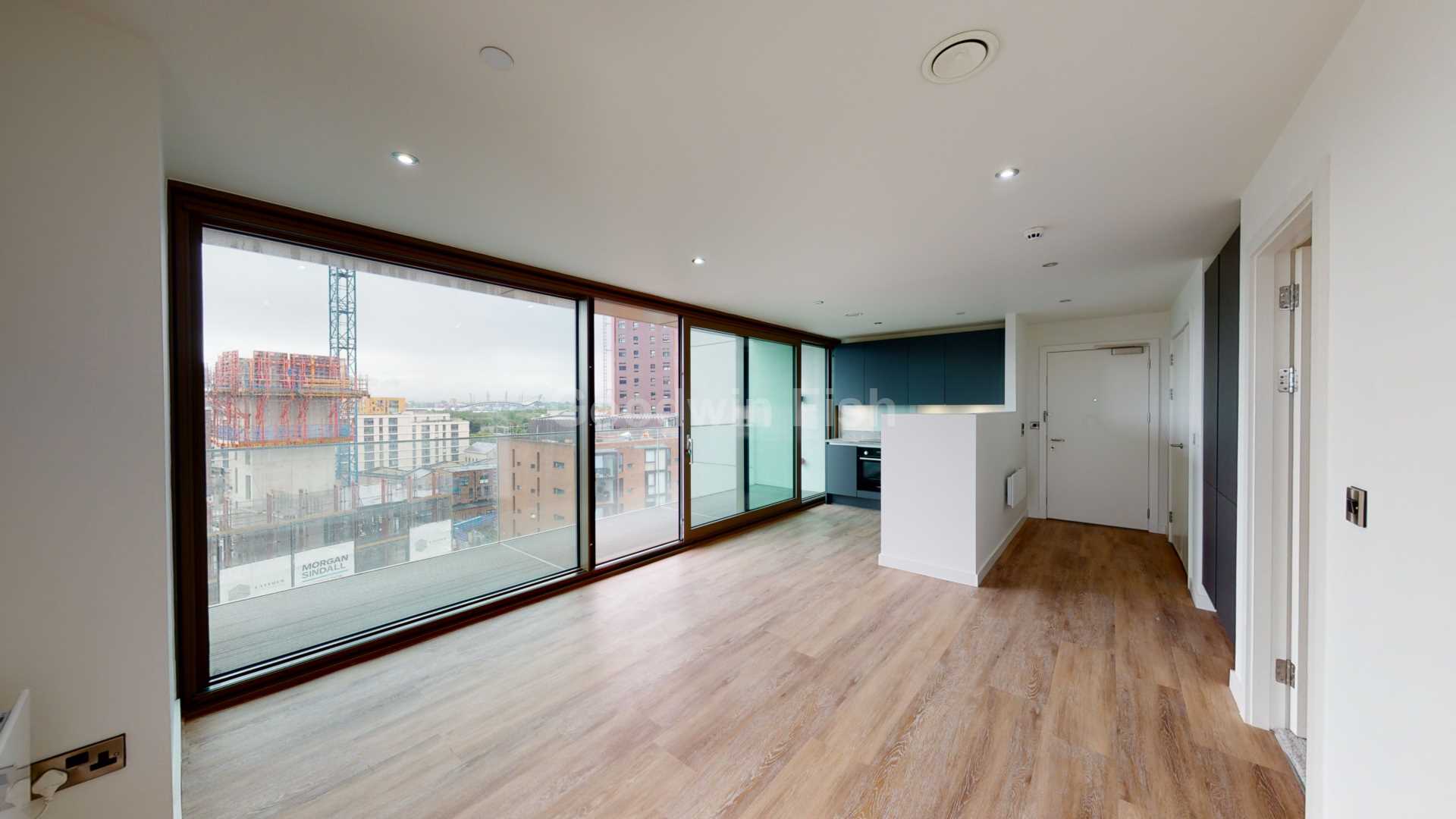 This particular apartment is located on the 11th floor and benefits from a corner aspect. Uncompromising floor to ceiling windows flood the entire space with natural sunlight. Kitchen appliances come integrated. A generously proportioned double bedroom provides access to the en suite bathroom. Sliding doors open onto a large east facing balcony.