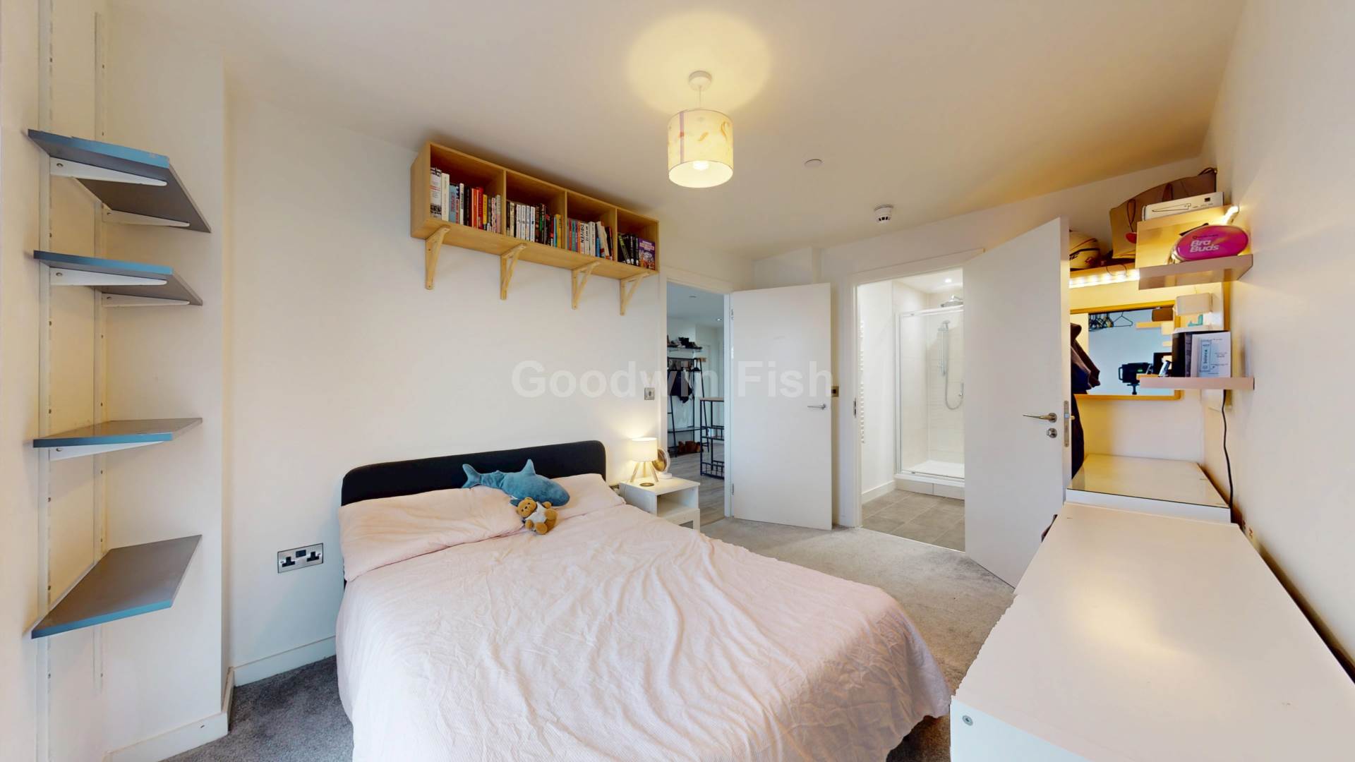 This well mainatined apartment offers 689 sqft of living space and briefly comprises: entrance; open plan lounge/diner with Juliet balcony; integrated kitchen with appliances; primary bedroom with en suite facilities; second double bedroom/office; primary Jack and Jill bathroom.