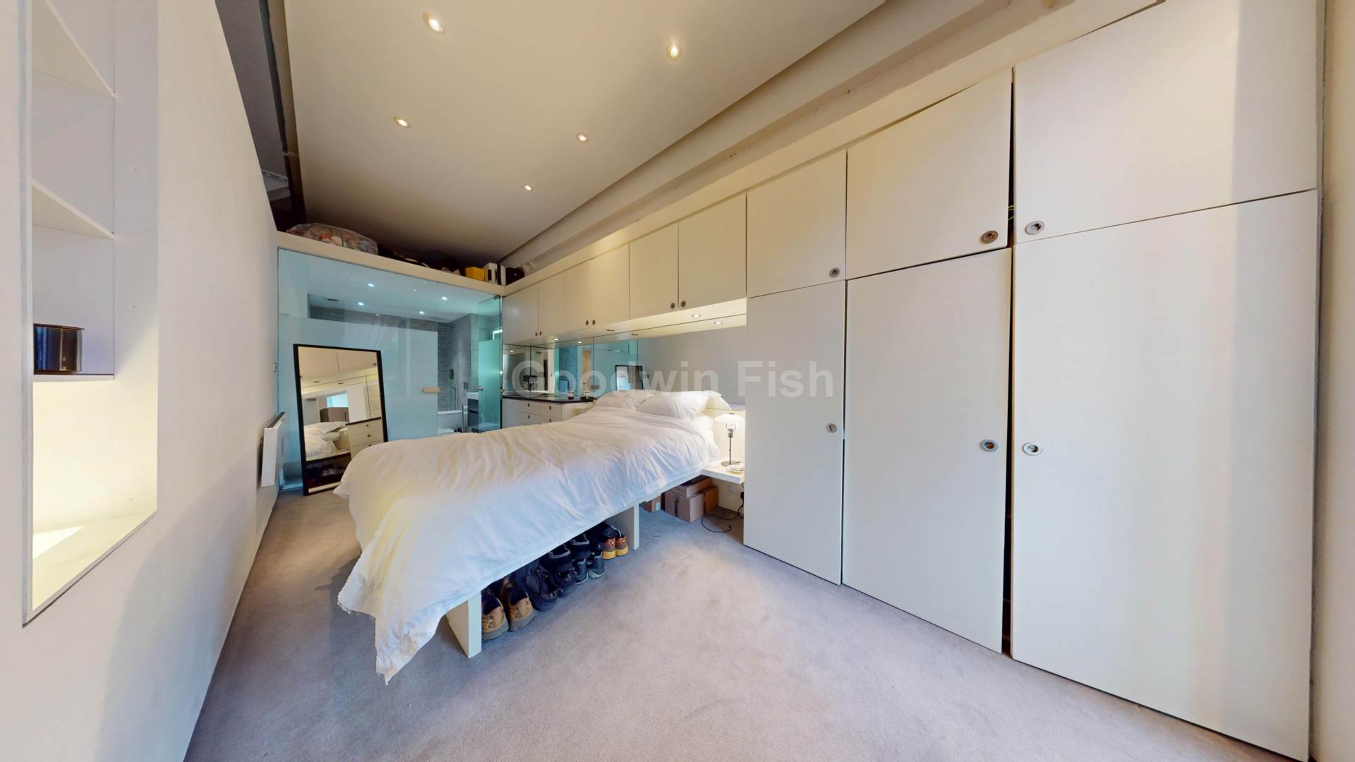 This well presented property is located on the first floor and benefits from floor to ceiling windows with a view of the Bridgewater Canal inlet. High ceilings are found throughout. Steel girders are the industrial features associated with award winning developers, Urban Splash. This `loft` style property boasts an estimated 1110 sqft living space and would suit a buyer who would appreciate the architectural history with a period conversion. Walnut flooring provides texture to an open living/dining area that extends to a bright sun room with access to a quaint canal facing balcony. Designed with the culinary enthusiast in mind, a prominent island is the kitchen`s centrepiece. There is substantial work top space, a convenient breakfast bar and ample cupboard space. Appliances come integrated. The primary bedroom is generously furnished with fitted furniture throughout, and provides access to a luxury Jack & Jill bathroom with sumptuous roll top bath, walk in shower and vanity unit. An additional double bedroom is available for guests or could be utilised as an office.