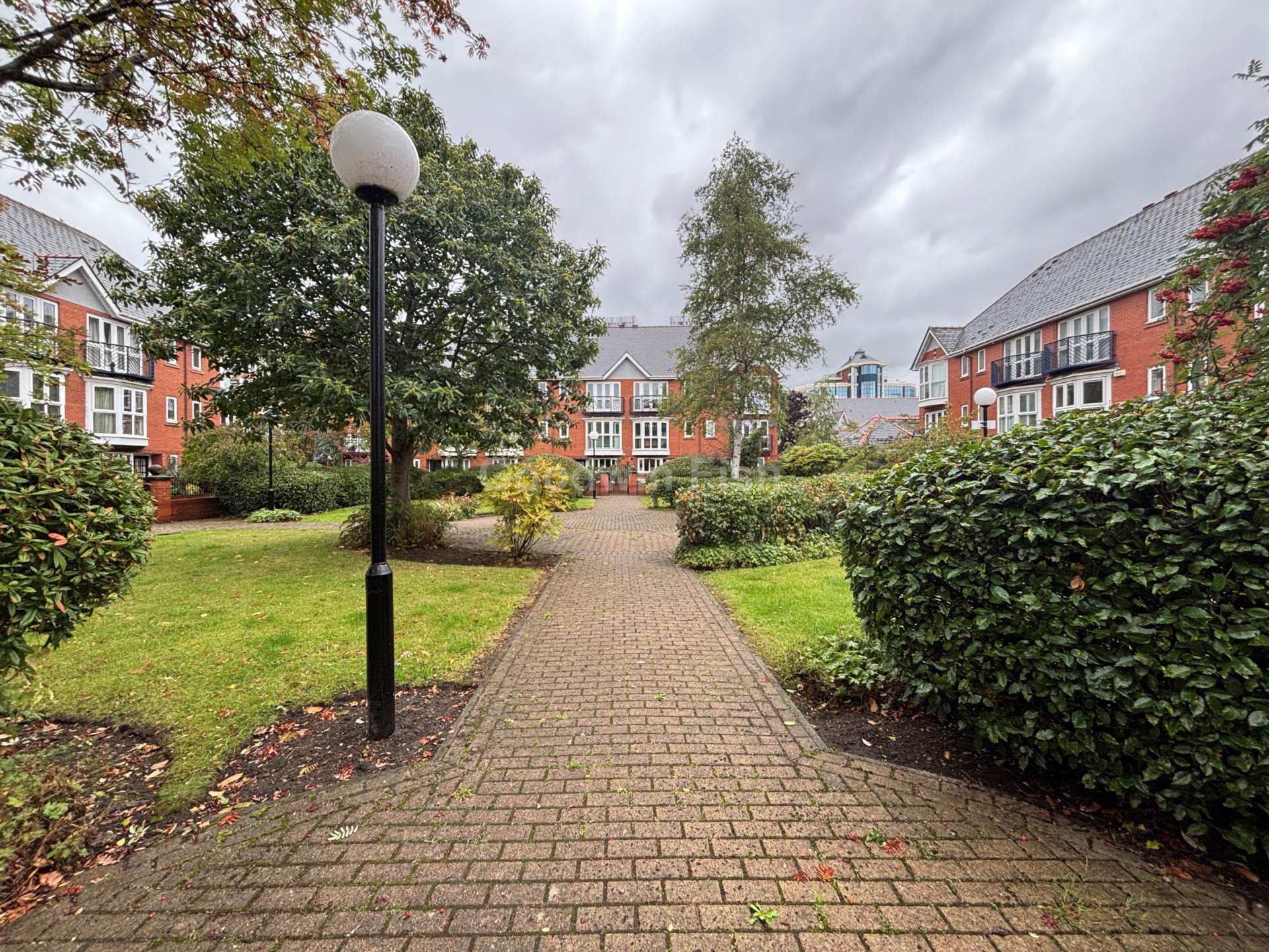 Top floor comprises: primary bedroom with feature balcony overlooking an established residents communal garden and en suite facilities; two further bedrooms; primary bathroom.